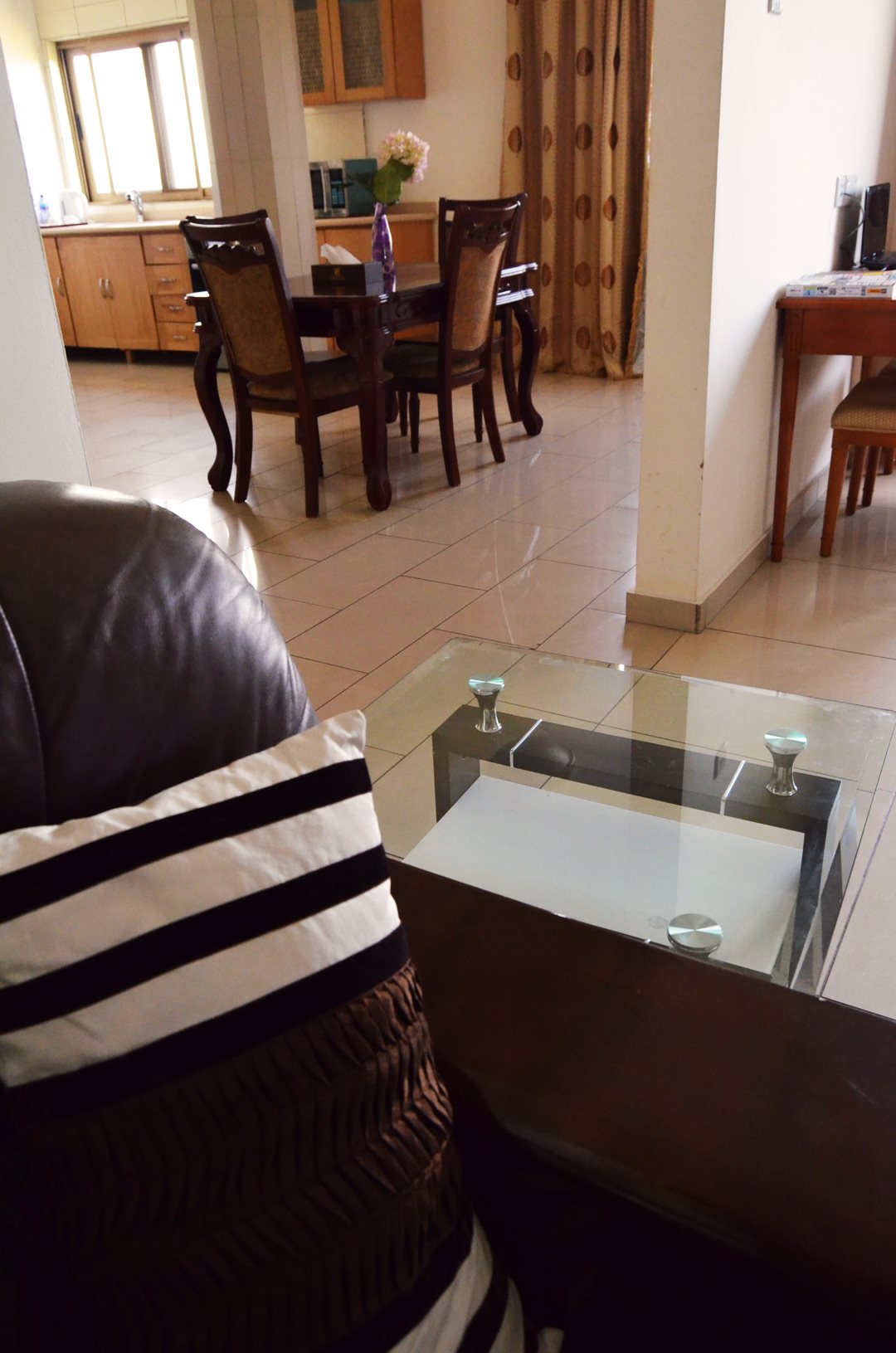 The Suite has a separate sitting area, a kitchenette, a dining area and a balcony.In room acilities include an individually controlled air conditioner, working desk, television with satellite channels, direct-dialing telephone, wardrobe, mini-bar, trouser press and tea/coffee making facilities. The ensuite bathroom comes with complementary welcome amenities.